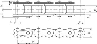 Corrente Tsubaki No. | Passo | Diâmetro do Rolo | Lar. Int. do Elo Interno | Pinos | Placas | Força de Tensão Mínima ISO 606 | Approx. Mass | |||||