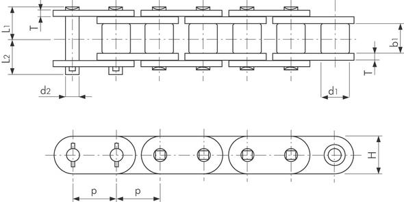Maior vida útil: A construção robusta permite que a corrente substitua as correntes até dois tamanhos de passo maiores da série ANSI G8.